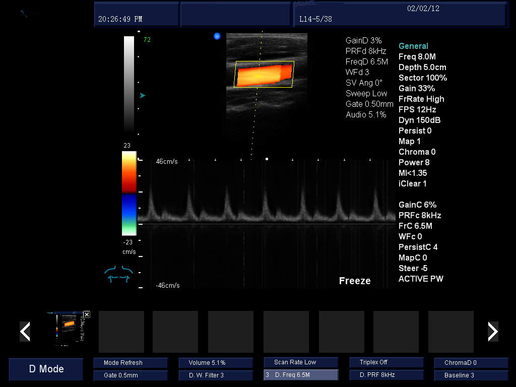 動(dòng)態(tài)實(shí)時(shí)血管成像:通過精確的多普勒回聲信號(hào)自動(dòng)識(shí)別處理,減少血管壁和血流的多普勒信號(hào)回疊,使血管內(nèi)血液和血管多普勒成像顯示更清晰。